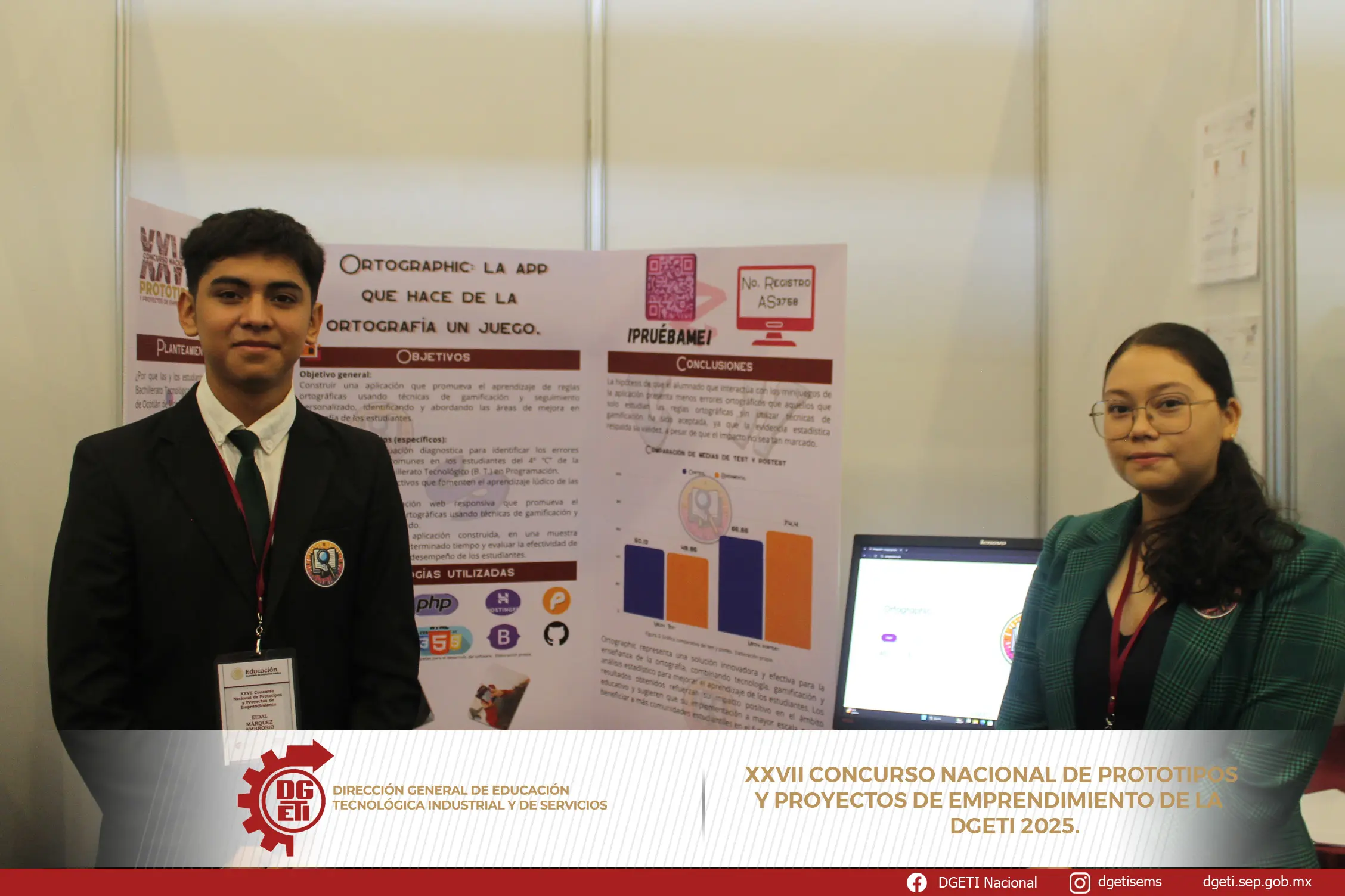 Del 9 al 13 de junio, Ortographic se presentó en el XXVII Concurso Nacional de Prototipos y Proyectos de Emprendimiento de la DGETI 2025, un evento de gran relevancia celebrado en Pachuca, Hidalgo. Nuestra participación en esta fase nacional fue el resultado de haber obtenido el primer lugar en la fase estatal, celebrada en Oaxaca. Con gran dedicación, nos esforzamos por demostrar el potencial innovador de nuestra aplicación, logrando cautivar tanto al exigente jurado como al público presente. Esta acreditación directa al nacional no solo valida nuestro trabajo, sino que también nos impulsa a seguir mejorando Ortographic para transformar el aprendizaje de la ortografía de forma divertida y efectiva.